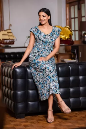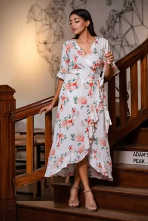 Turquoise wrapround frill dress OK 2040 Turquoise wrapround frill dress OK 2040 රු 2,390.00