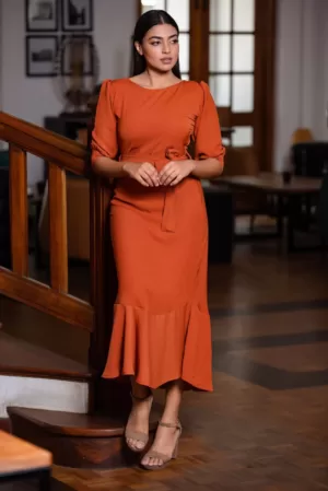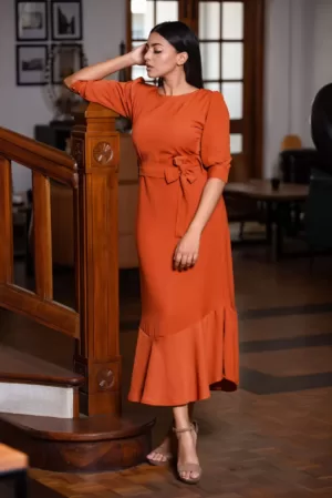 Sleeve peplum peach dress with skirt frill OK 2043 Sleeve peplum peach dress with skirt frill OK 2043 Original price was: රු 2,390.00.Current price is: රු 1,690.00.