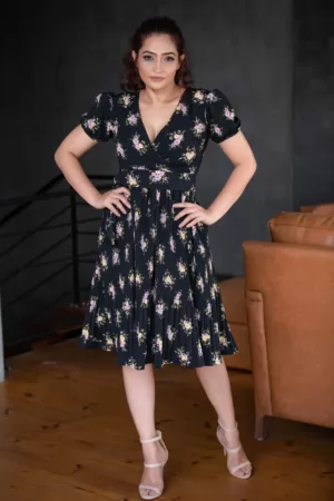 Be the first to review “Berry blue long sleeve Chinese collar dress OK 3081”