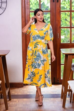 Black printed pleated flared dress  OK 3081 Black printed pleated flared dress OK 3081 රු 3,090.00